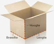 Allereerst wordt de lengte x breedte opgegeven wat hetzelfde is als het grondvlak van uw doos. Daarna de hoogte van de doos. De lengte is steeds de langste zijde van de doos.